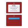 Landscape ID Card Holder for a Lanyard or Clip, with a Card slot to the rear., finished in matt velvet, soft touch Torino vegan PU in a choice of 19 colours, each with a unique colour change when embossed. Product features include - Turned and stitched edges, Clear window to show your ID card or season ticket, Slot to rear to hold a credit or swipe card, Large branding area to rear.