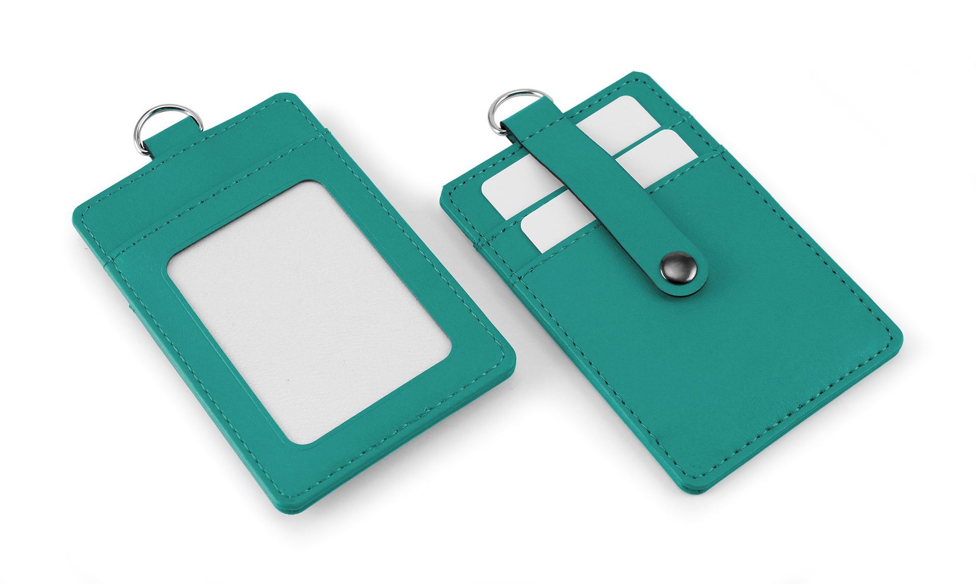 ID Holder with card pockets made from Porto material which is recycled from waste plastic bottles that would normally go to landfill. Porto is available in a choice of 10 colours, the stitching can match or contrast to give your product a totally bespoke look. This high-quality recycled vegan material has a subtle grain and is ideal for debossed, foil blocked or full colour branding. Features include - Folded and stitched edges for a quality finish, One framed pocket ideal to hold identity cards, season tickets or licence cards, Two pockets to the rear to hold creadit or entry cards with a press stud strap to secure, Chrome ring to secure to lanyard (not included), The Porto material and the lining are rPET based, the card is recycled, the product is bulk packed in recycled and recyclable card boxes.