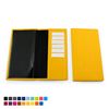 Travel Wallet with one clear and one solid pocket, finished in matt velvet, soft touch Torino vegan PU in a choice of 19 colours, each with a unique colour change when embossed. Product features include - One Clear interior pocket ideal to hold passports, boarding cards, tickets and currency, One PU pocket with slots for credit cards, Folded and stitched edges for a quality finish., Contrast stitching or interiors available to give a bespoke look at no additional cost