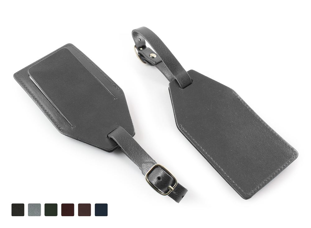 Angled Luggage Tag with security flap , finished in Universal leather in a choice of 5 colours. Ideal for debossed, Foil Blocked or full colour branding. Features include - Mix & match the strap and body colour as required, Security flap to cover the personal details card, Stitched to the perimeter in matching or contrasting thread, Choose from a chrome, gold coloured or gun metal buckle, Made to order in the UK for a low carbon foot print, Individual names or initials available please enquire.